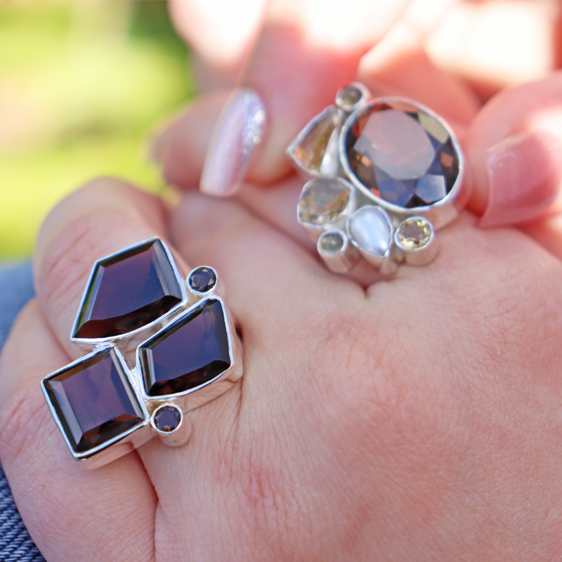 This very beautiful classic multi Smoky Quartz ring is handcrafted from high quality materials with a bohemian style. Featuring beautiful and vibrant multi gemstones, it is sure to be a showstopper.