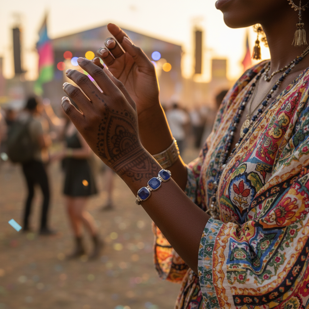This elegant, handmade Sapphire Quartz classic silver bracelet is crafted of sterling silver and with a unique boho style. Its elegant design is perfect for adding a touch of sophistication to any outfit. Featuring three stones each in bezel settings.