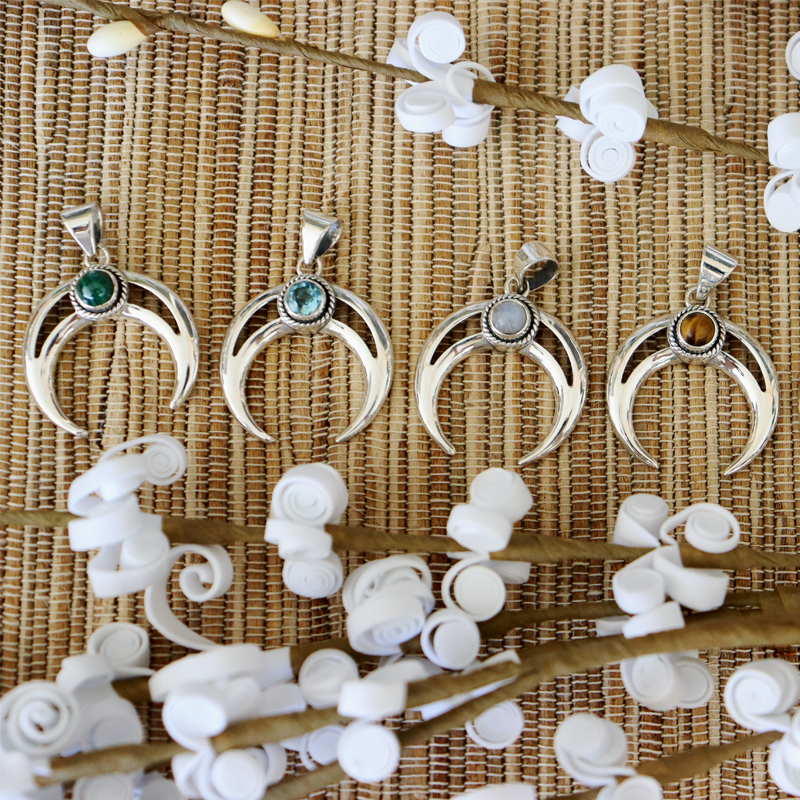 Embrace celestial elegance with this striking moon bohemian style Malachite pendant, crafted from sterling silver in an authentic boho style. The crescent silhouette captures lunar mystique, while the vibrant turquoise stone adds warmth and character to any collection. Perfect for layering or wearing solo, this piece combines timeless bohemian aesthetics with quality craftsmanship. An ideal accessory for those drawn to nature-inspired jewellery with spiritual significance.