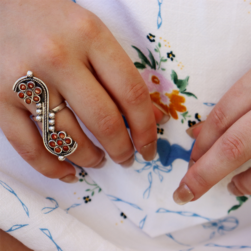 What a work of art! An absolute bohemian beauty. This unique handmade Ruby Quartz ring is a rare find featuring stunning Ruby Quartz in a classic bohemian style sterling silver oxidized setting. The ring is adjustable