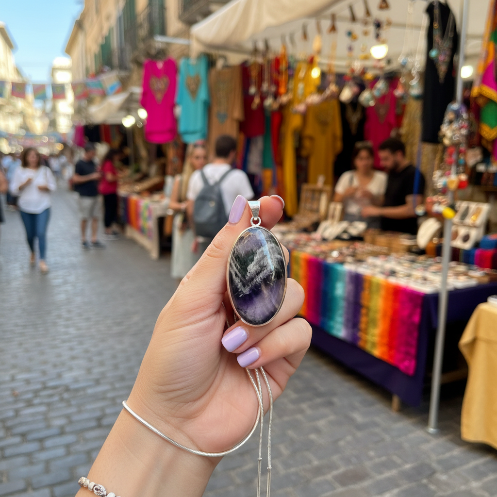 A beautiful big oval stone sits at centre on this Chevron Amethyst oval bohemian pendant. Set in solid sterling silver with a classic boho style.